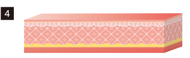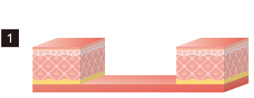 本品(テルダーミス真皮欠損用グラフトのコラーゲン層)は熱処理による架橋のため、コラーゲン本来の生体親和性を損なわず、皮膚・粘膜欠損部に貼付することにより、本品(コラーゲン層)自体が母床からの細胞侵入で真皮様組織(肉芽様組織)を構築します。