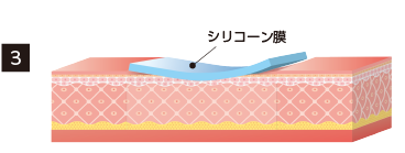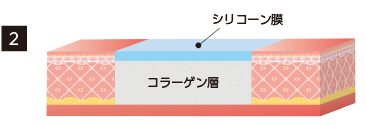 コラーゲン層に周囲から細胞が侵入し結合組織様組織を構築します。粘膜上皮は、シリコーン膜とコラーゲン層の間に侵入していきます。